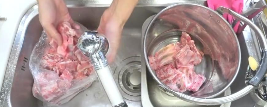 ①냉장 돼지등뼈 4kg를 깨끗하게 세척해서 뼛조각을 제거해주세요.
