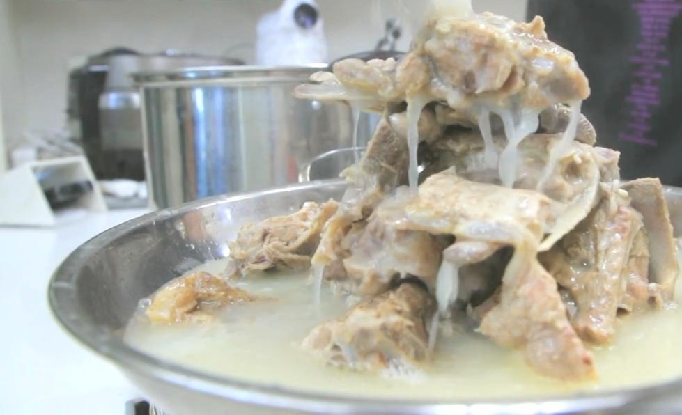 ④ 두 시간을 끓이면 돼지등뼈 육수 완성! 이대로 소금이나 새우젓 간을 더해서 백숙으로 즐겨도 맛있어요! 고기를 발라내어 카레를 만들어도 별미랍니다. 하지만 우리의 최종 목표는 감자탕이죠? ^^
