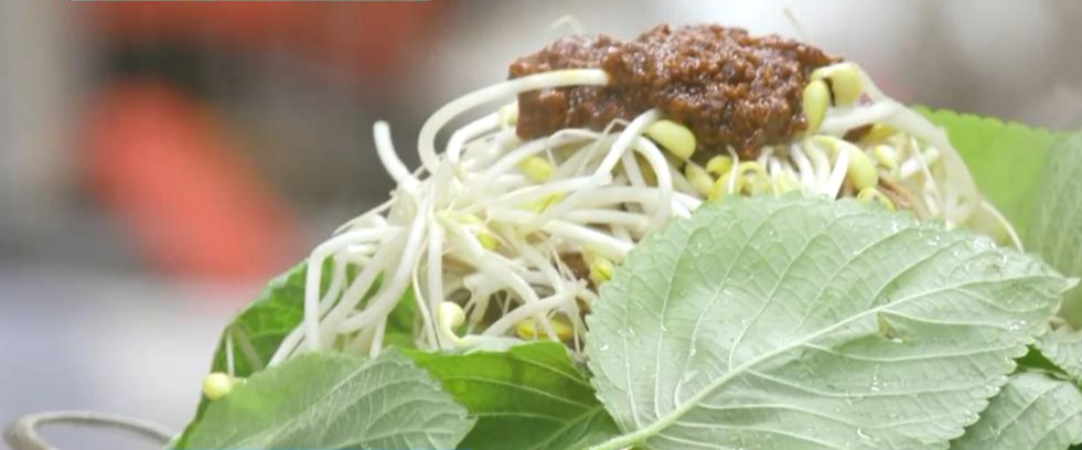 ⑧ 깻잎 예쁘게 둘러 담아줍니다. 콩나물 위로 양념장 1T 추가!